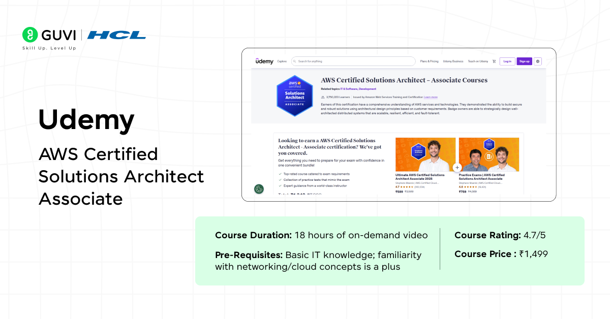 | 3 | Udemy – AWS Certified Solutions Architect | Real-world examples, exam prep, lifetime access | Intermediate | ₹1,499 | Link |