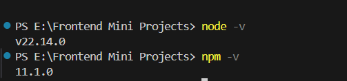 • Node.js – Download and install it from the official Node.js website. After installation, open the terminal and run node -v to verify that it is installed and to check the version.