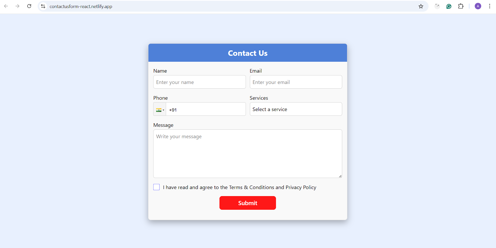 The Contact Us form that we will develop with the help of the ReactJS library is the one that is mainly concerned with the frontend and receives user feedback.