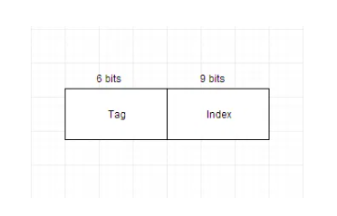 The CPU address of 15 bits is divided into 2 fields. In this the 9 least significant bits constitute the index field and the remaining 6 bits constitute the tag field. The number of bits in index field is equal to the number of address bits required to access cache memory.