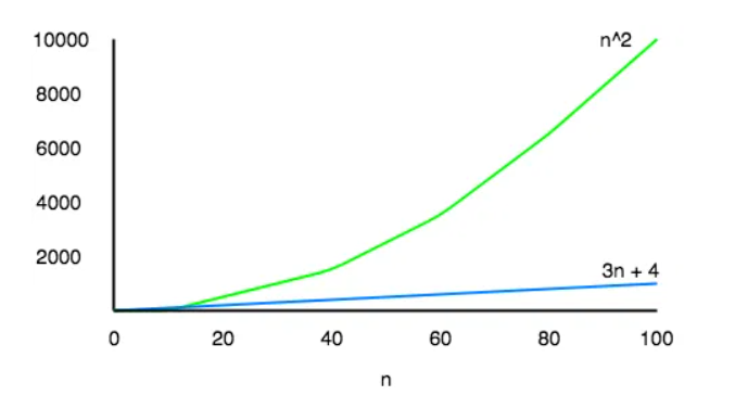 For n = 1000, n2 will be 1000000 while 3n + 4 will be 3004.