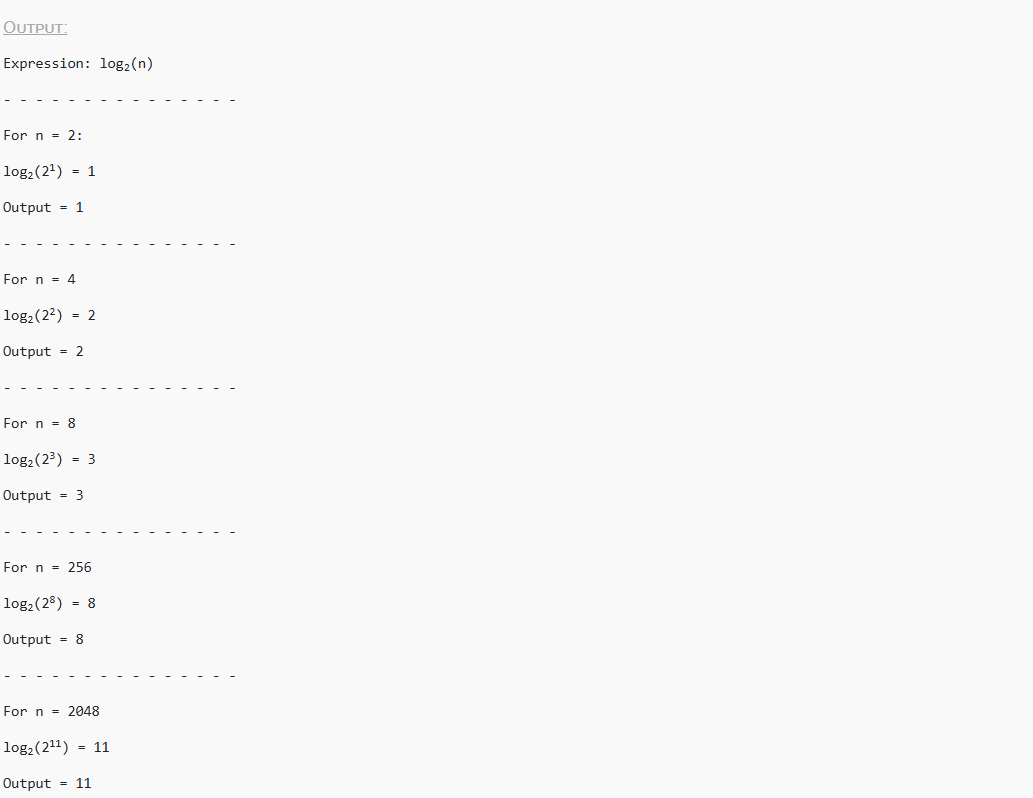 And guess what, in mathematics, the function log2 n means exactly same. We have already seen how the log function works above, did you notice something there?