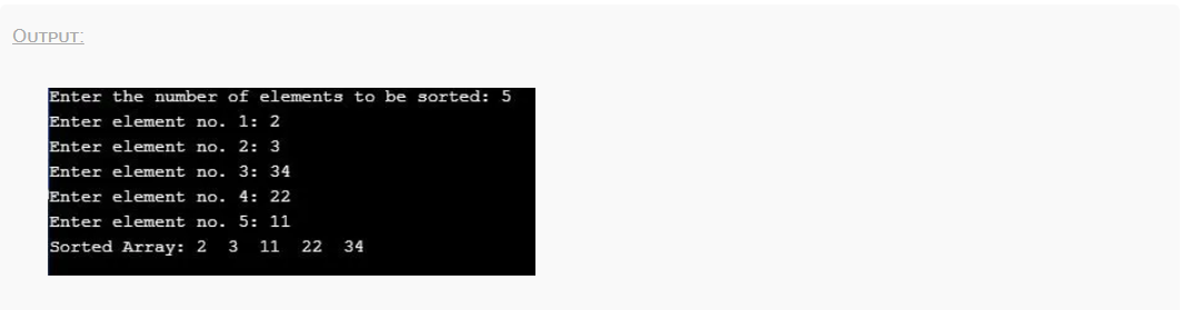 In the above code, in the function bubbleSort, if for a single complete cycle of j iteration(inner for loop), no swapping takes place, then flag will remain 0 and then we will break out of the for loops, because the array has already been sorted.