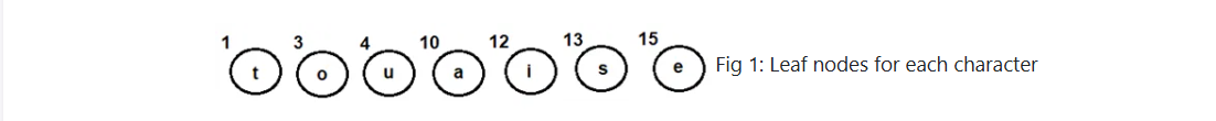 - Initially, all nodes are leaf nodes containing the character itself along with the weight/ frequency of that character