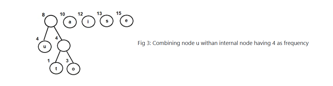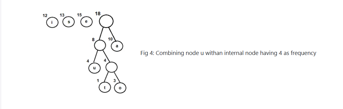 Extract and Combinenode u with an internal node having 4 as the frequency