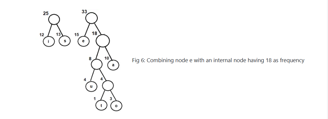 Extract and Combine node ewith an internal node having 18 as the frequency