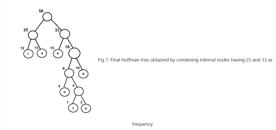 Finally, Extract and Combine internal nodes having 25 and 33 as the frequency