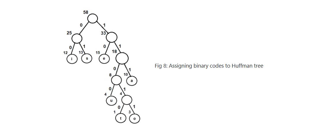 - It uses variable-length encoding scheme for assigning binary codes to characters depending on how frequently they occur in the given text. The character that occurs most frequently is assigned the smallest code and the one that occurs least frequently gets the largest code