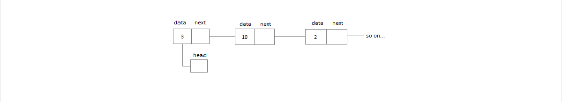 Singly linked lists contain nodes which have a data part as well as an address part i.e. next, which points to the next node in the sequence of nodes.