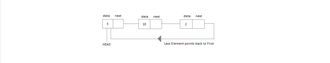 In circular linked list the last node of the list holds the address of the first node hence forming a circular chain.
