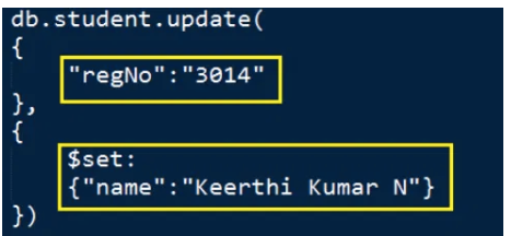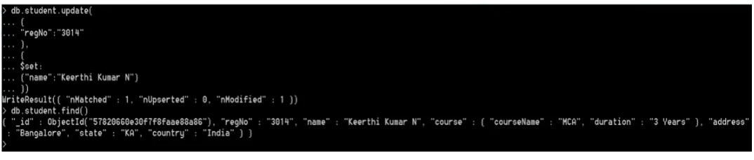 db.students.find({"regNo":"3014"})MongoDB: Updating a document in a collection(Update)