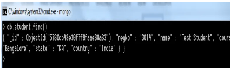 NOTE: Please observe that the record retrieved contains an attribute called _id with some unique identifier value called ObjectId which acts as a document identifier.