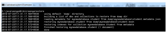 The above screenshot shows that the dumped collection data has been restored successfully.