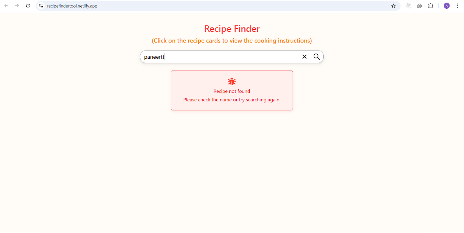 If something goes wrong, such as no results found or an API issue, the app displays a short and clear error message to inform the user.