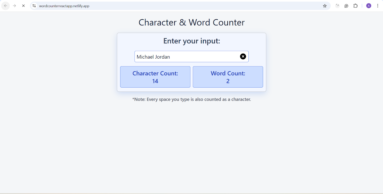The live version of the Word Counter App lets users interact with the project in real time and see how it works. Using the demo link, the functionality of character and word counting can be explored directly through a simple, user-friendly interface.