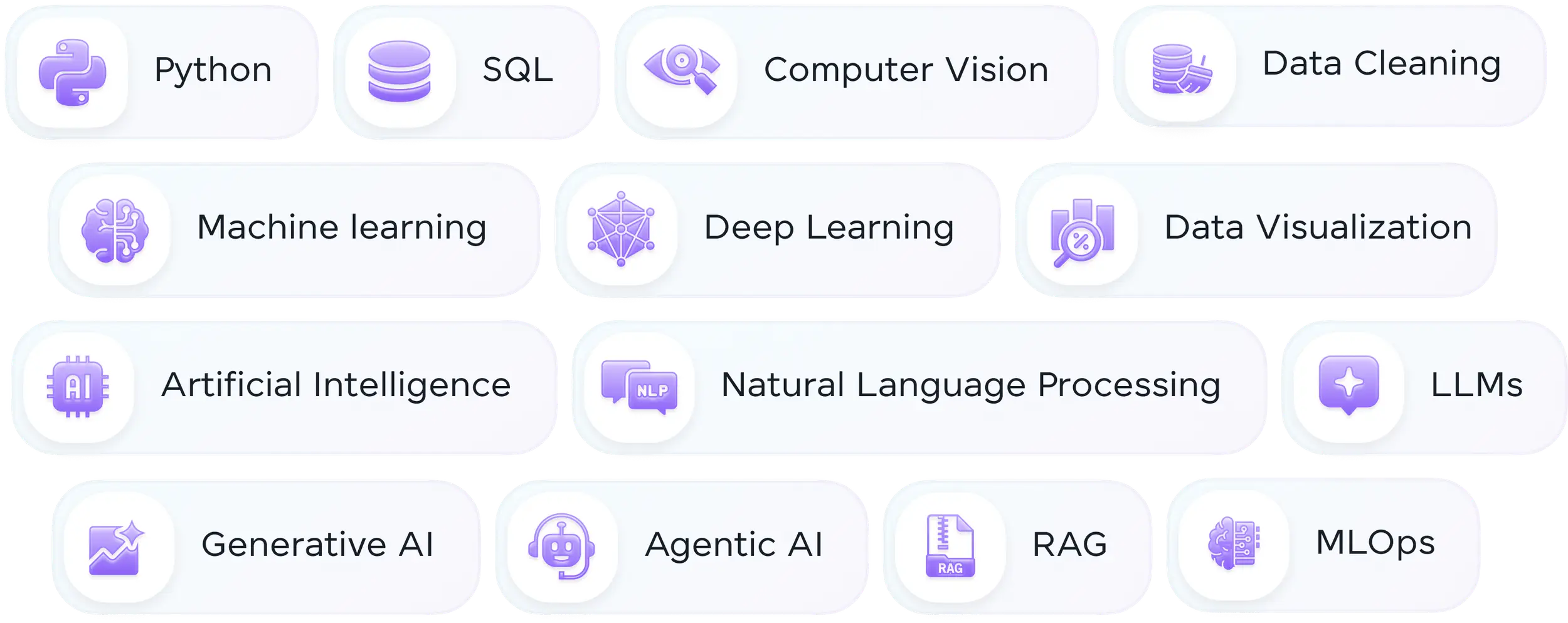 Python, SQL, ML, MLOps, Generative AI, Agentic AI, etc.