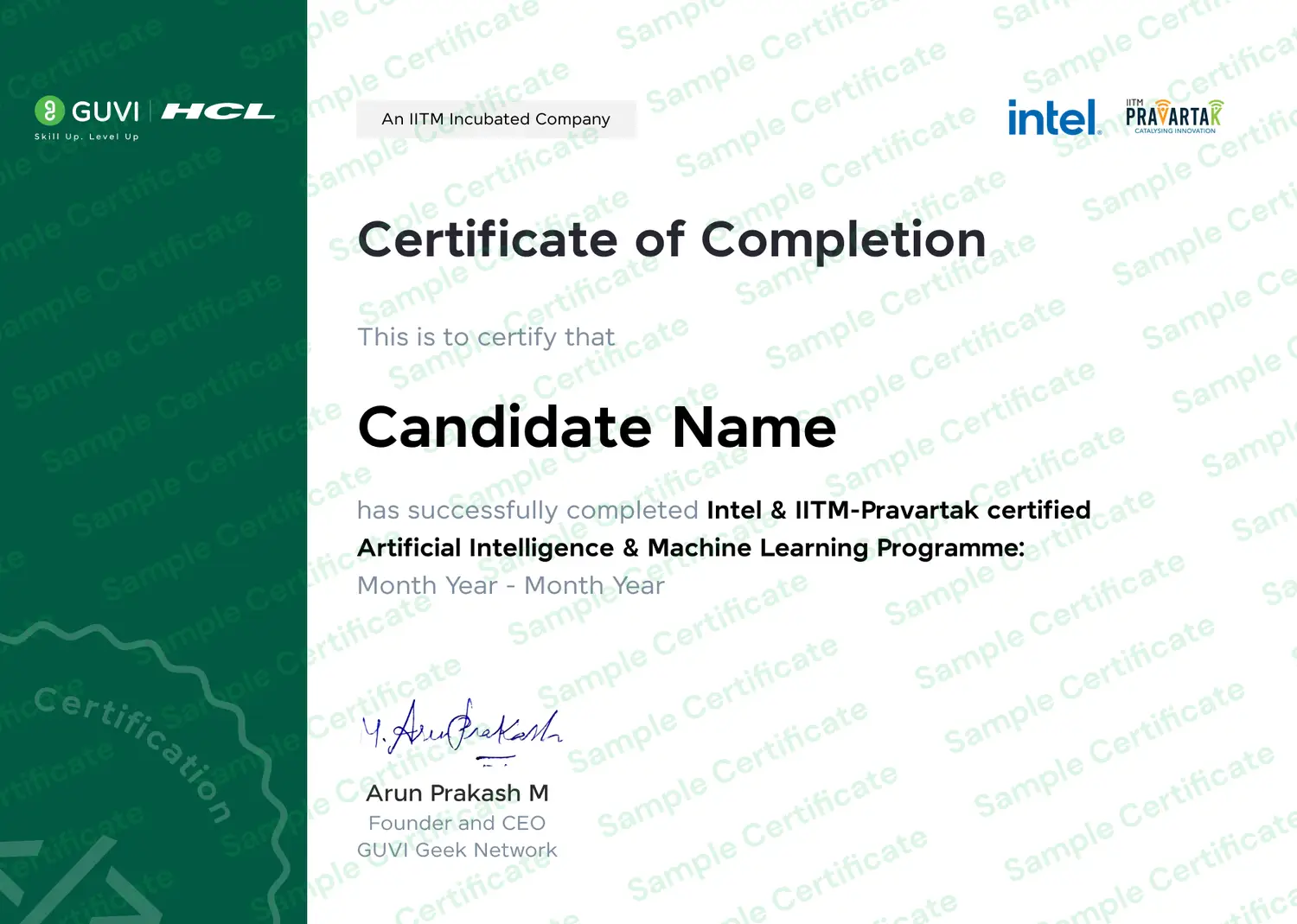Co-designed by Intel and delivered through GUVI’s industry-aligned curriculum, you'll gain hands-on experience in high-impact areas like Generative AI, Agentic AI, Deep Learning, and MLOps.