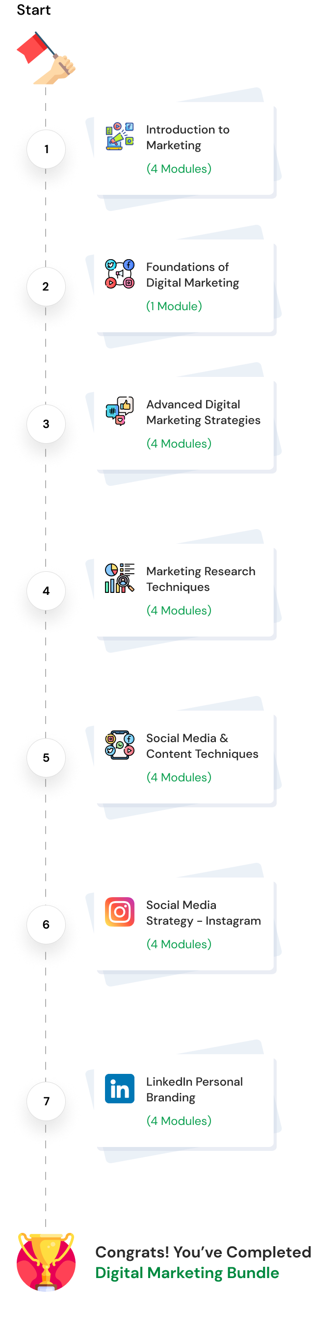 Taking up the 7-in-1 Digital Marketing combo course will help you gain in-demand SEO concepts, digital marketing strategies, social media strategies, research concepts, and 7 global skill certifications from an IIT-M and IIM-A incubated company, which will add value to your resume and help you in your job search.
