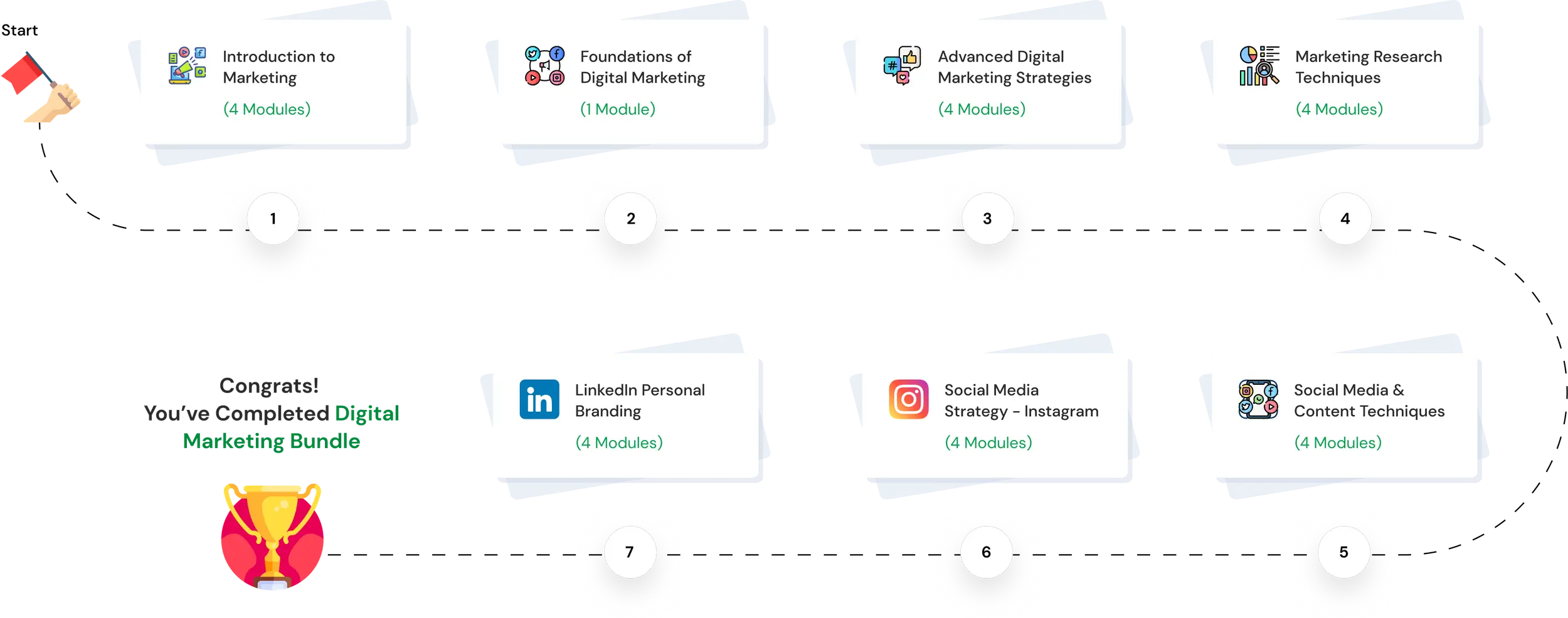 The 7-in-1 Digital Marketing combo course offers 100% online, self-paced learning. You can start and finish the courses at your convenience based on your timeline, schedule, and availability. Once purchased, you’ll get lifetime access and unlimited learning whenever and wherever you want it.
