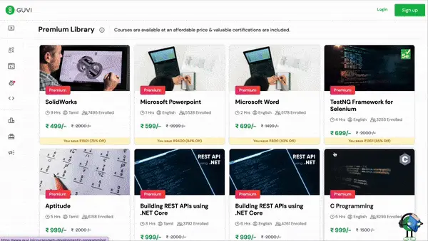 Hefty Prices don't always mean resourceful Knowledge. GUVI's premium pass is one of its kind complete subscription to access 390+ Premium courses, and 2000+ hours of videos, assignments, and quizzes to offer you a holistic approach to all the technologies that are eminent to the industry.