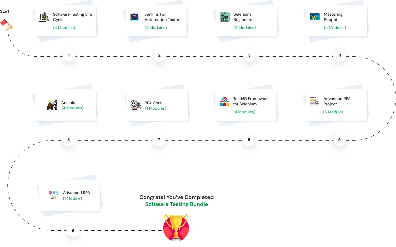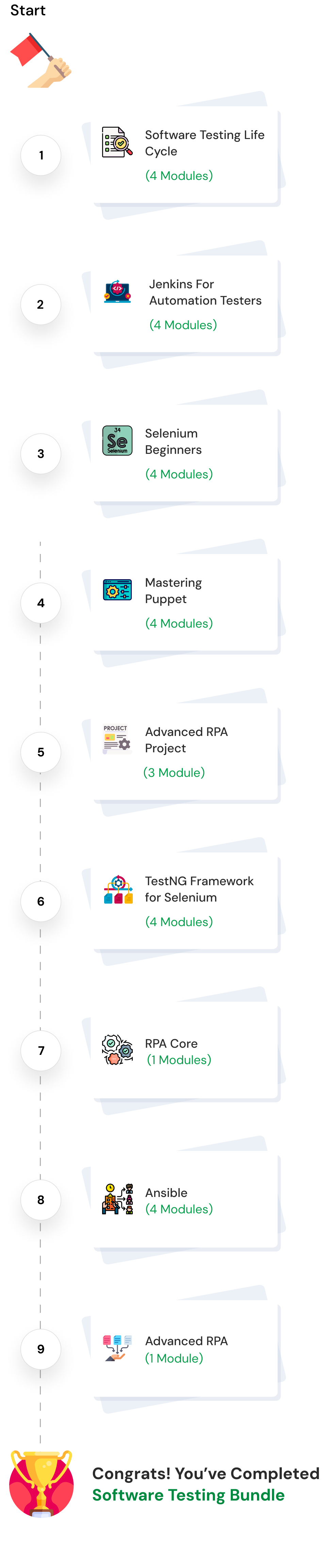 Discover Software Testing and Automation: Our combo pack offers a curated selection of courses, each with detailed modules to guide you from fundamentals to advanced skills.