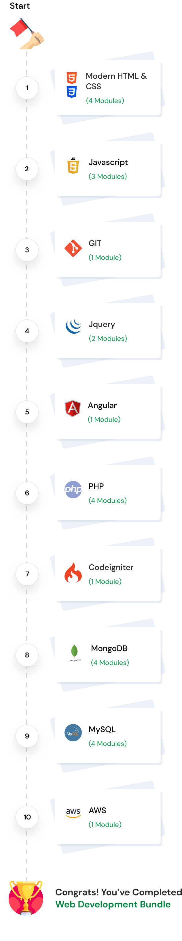 Transform into an advanced web development professional from a beginner. Learn from a curated selection of self-paced, upskilling courses with detailed modules offering expert guidance.